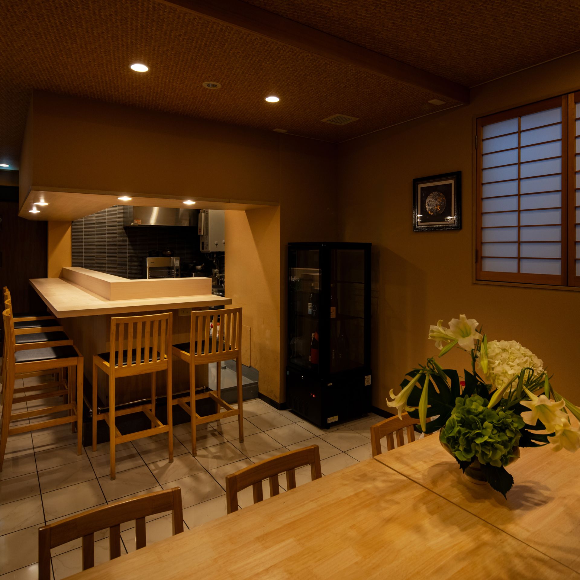 | Number of Seats | Counter: 7 seats Tables: 2 tables for 4 people each (8 seats total) |